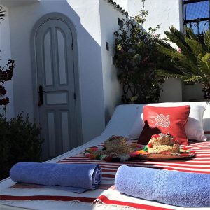 Private terrace with panoramic views over the Strait of Gibraltar, the all city and Spain. Carpets, hammocks, deckchairs and palm trees …