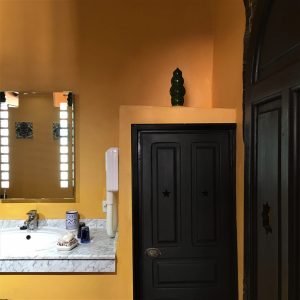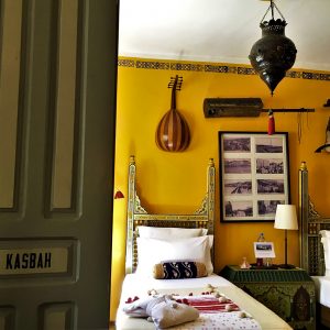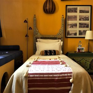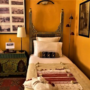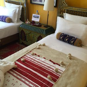 In the purest Rif style, with beautiful typically painted headboards. Two single beds.